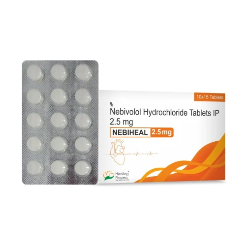 2.5 Mg Nebivolol Hydrochloride Tablets IP is a general medicine suitable for adults. Each tablet contains 2.5 mg of nebivolol hydrochloride. It comes in a quantity of 10 X 15 strip and has a physical form of tablets. This medication is commonly used for treating high blood pressure and heart failure. It works by relaxing blood vessels and slowing down the heart rate, which helps in reducing blood pressure and improving blood flow. Storage Instructions: It is recommended to store the tablets at room temperature. Keep it away from moisture and direct sunlight.